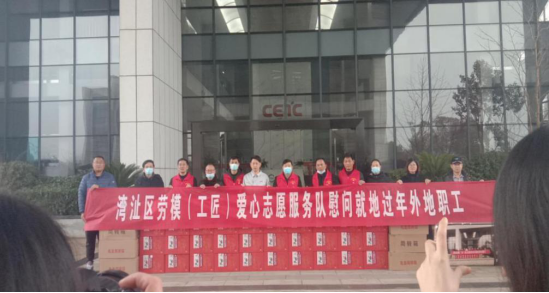為積極響應(yīng)政府“春節(jié)期間非必要不返鄉(xiāng)”的號(hào)召,在區(qū)總工會(huì)領(lǐng)導(dǎo)的支持下,去年12月份剛剛組建成立的灣沚區(qū)勞模(工匠)愛心志愿服務(wù)隊(duì),作為幫扶濟(jì)困專隊(duì)隊(duì)長沈顯華,就立馬為愛心活動(dòng)謀劃方案,發(fā)倡議,募集款,忙得不亦樂乎。2月5日,愛心志愿者們?cè)谏蝻@華隊(duì)長的帶領(lǐng)下走進(jìn)中電科、明珠塑料、美瑞爾等5家企業(yè),看望慰問150名留守崗位就地過年的外來員工,并向留守員工贈(zèng)送了新春大禮包、牛奶、疫情防控口罩等生活物資,讓就地過年的員工切身感受到“有家有愛有年味”的感覺。另據(jù)沈顯華介紹,按照志愿服務(wù)活動(dòng)方案,在2月6日,勞模(工匠)志愿服務(wù)隊(duì)還將走進(jìn)六郎河?xùn)|、周圩村,走訪慰問6戶困難家庭,為他們送去大米、防疫口罩等并捐贈(zèng)500元現(xiàn)金,讓貧困家庭過上一個(gè)愉快祥和的春節(jié)。